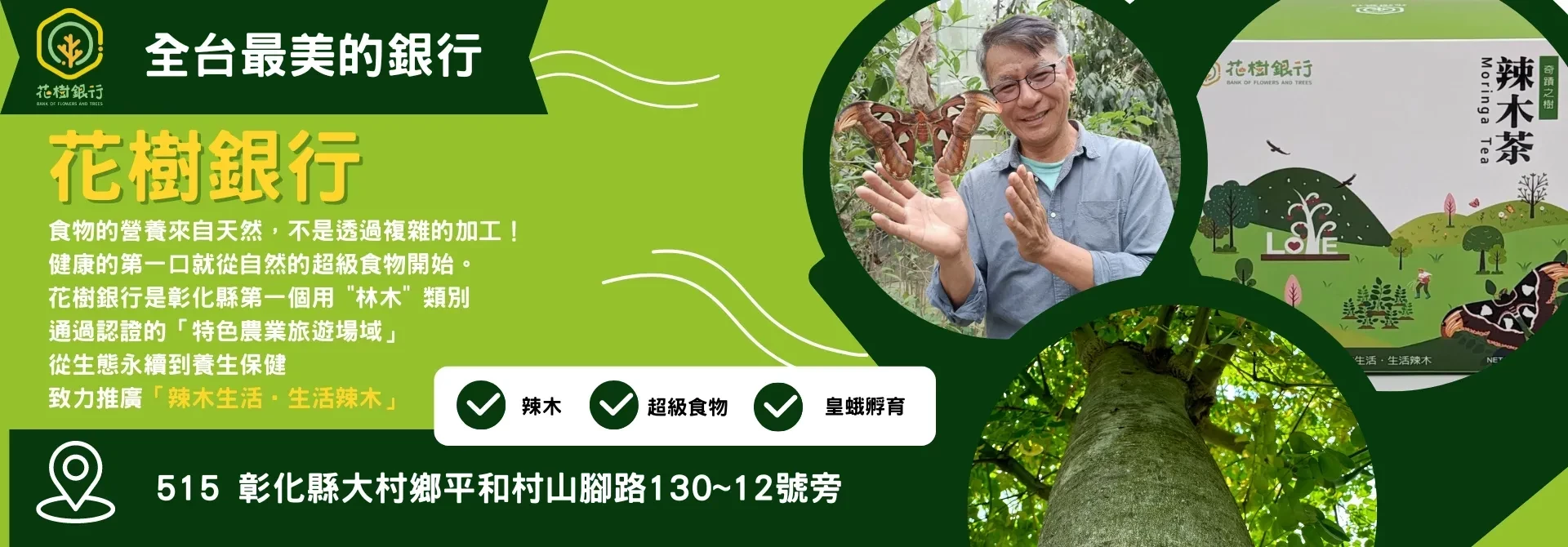 創辦人郭俊銀先生憑著一股對土地的熱愛,將一片荒涼之地,親手打造成充滿生機的生態園區。在這裡,他不用化學肥料,不灑農藥,只用最友善的方式對待萬物。這份溫柔,讓蝴蝶、獨角仙有了安心的家,更成為社區裡一道最暖的光。