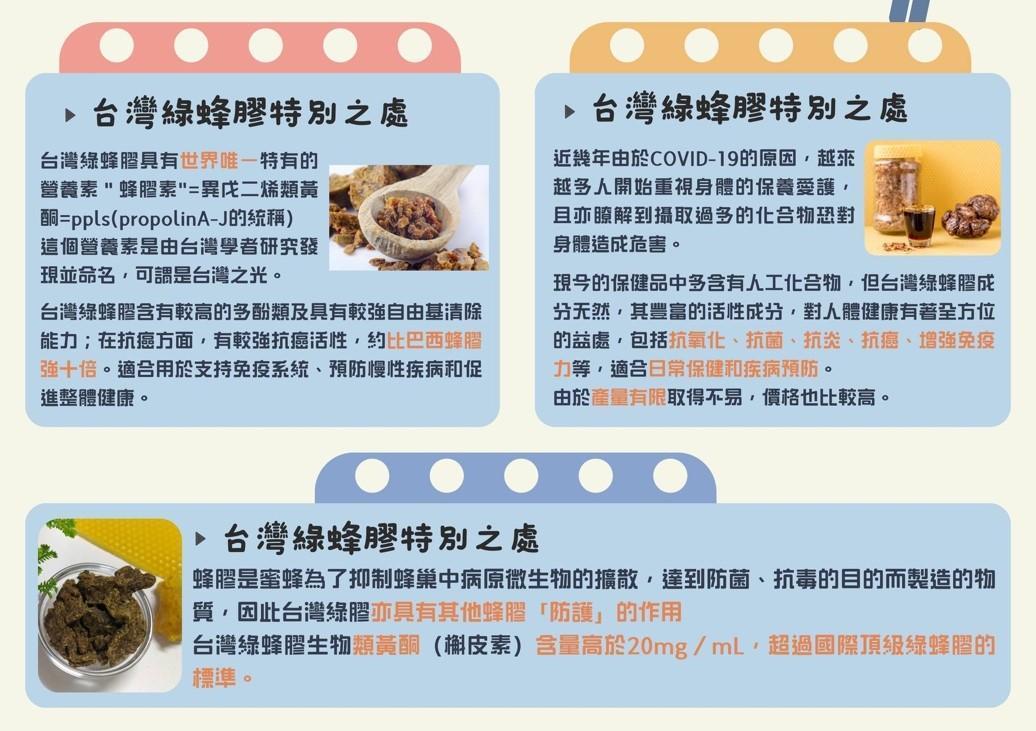 · 採用台灣優質綠蜂膠製成
