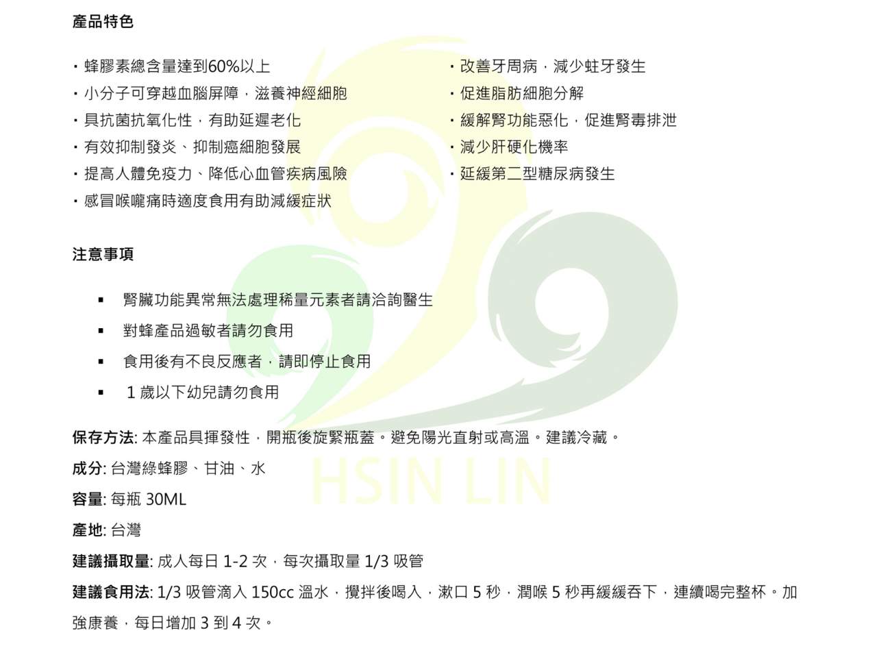 · 含高濃度Propolin > 60mg/ml