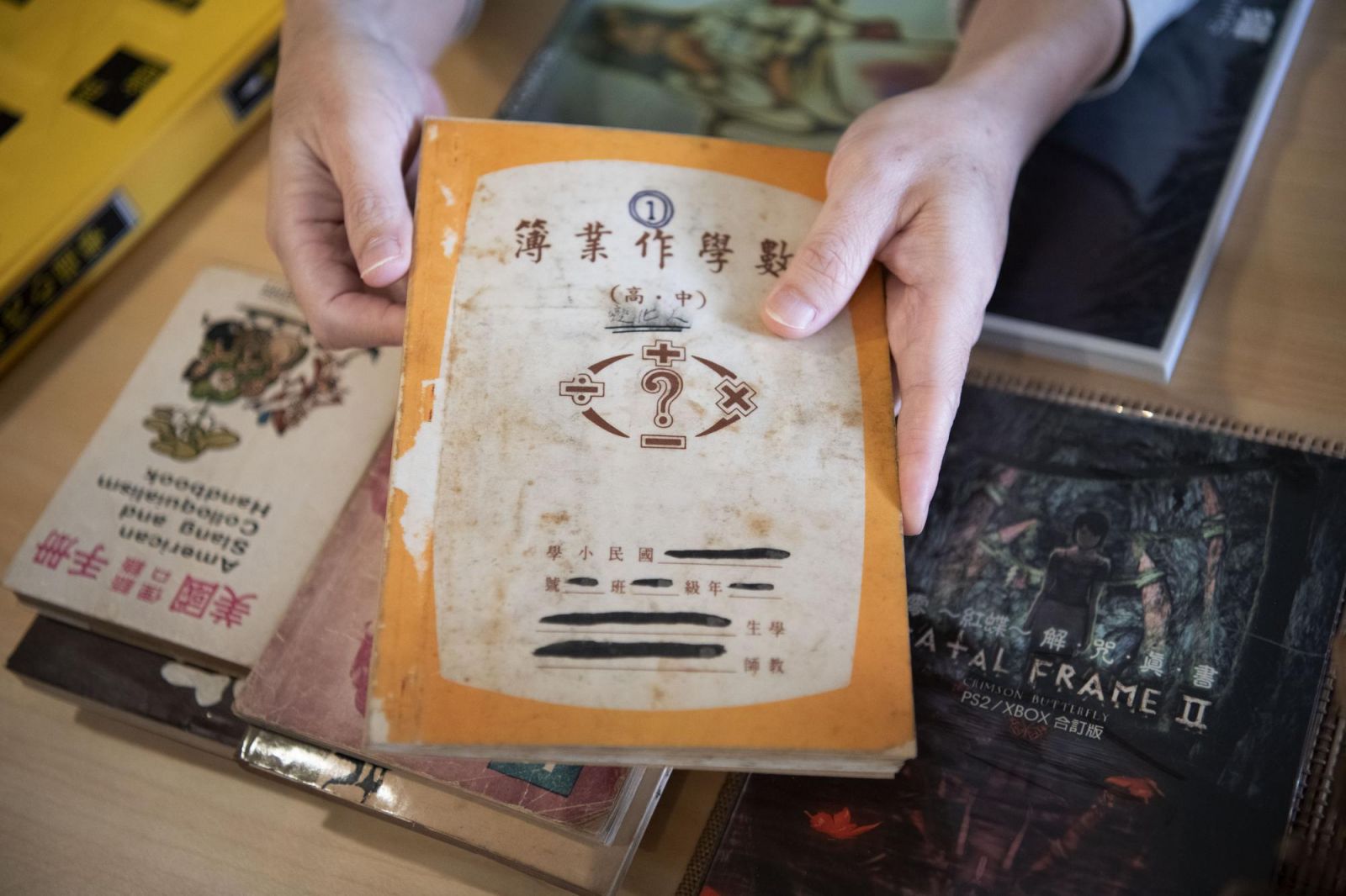 陳炳宏修復的第一本書是恐怖遊戲《零~紅蝶~》的遊戲攻略本。(攝影/楊子磊)