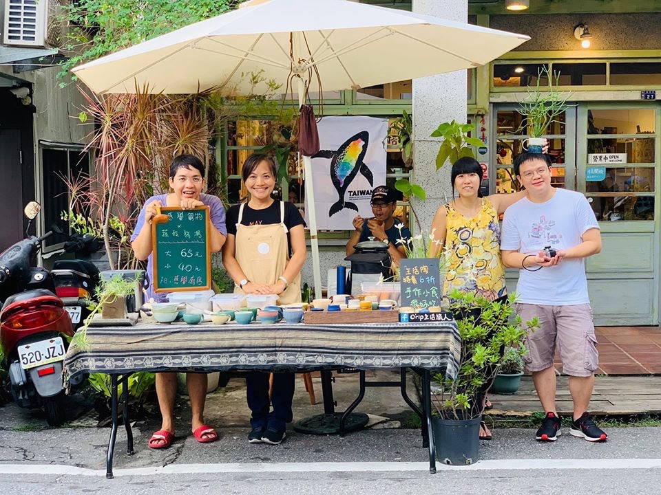 許瑋(右二)攜手在地商家舉辦O’rip週末市集,販售在地手工藝品,促進觀光經濟。圖片提供/O’rip生活旅人