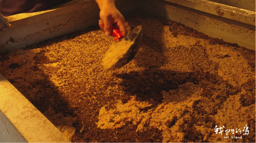 口湖清潔隊重新規劃回收場,黑水虻整個生命週期,從繁殖、取卵、育幼、消化廚餘,都有不同空間。在繁殖產卵的網室,隊員小心翼翼地從木片上把卵撥下來,秤重後,再將蟲卵放在孵化網裡,放置在育幼區,等待幼蟲孵化。剛孵化的幼蟲先以豆渣餵食,大約七天再移到另一個飼養區,就可以開始餵食大量的廚餘。