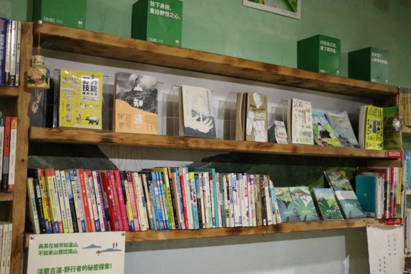 而在書店中,由於有機書店是以讓民眾換書的方式經營,因此書本的種類過於豐富,因此書本擺放時僅能大略分類,如文史類、管理類、小孩子的繪本等等,但一眼望去,卻有兩排風格鮮明且分類明確的書籍特別引人注目,那是和古道山林相關的書。