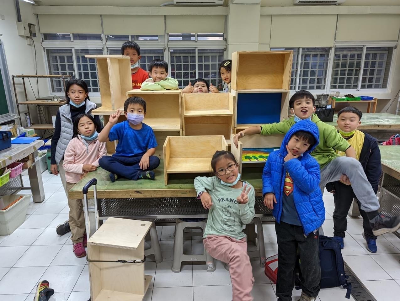 ↑木作森活開設校園課後班,教導小朋友親手完成多功能設計家具「柏林凳」。圖片提供/木作森活臉書粉專