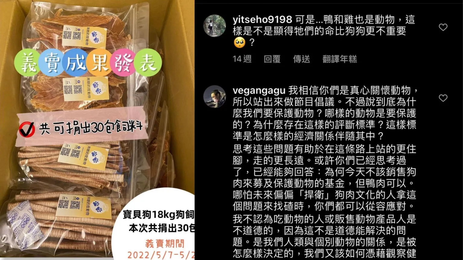 ↑Alice所義賣的肉類零食受到網友質疑違背了「救動物」的本質。照片提供 / 擷取自「用聽的救動物」Instagram