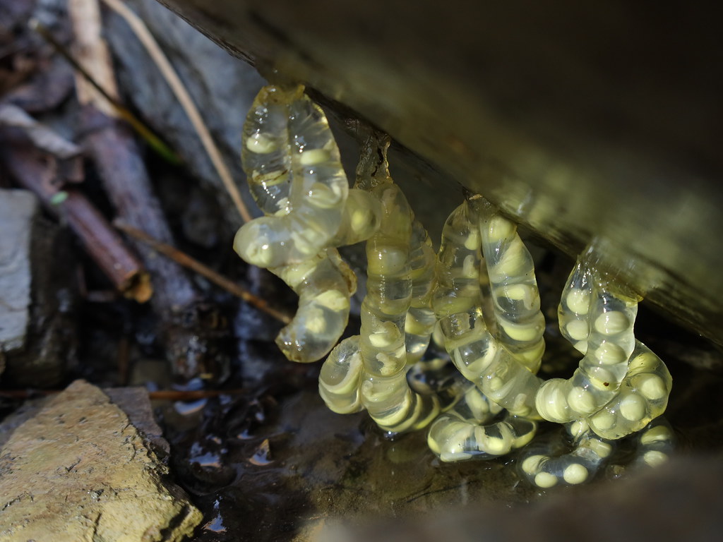 維持潮濕的環境是維繫山椒魚族群的關鍵。圖為楚南氏山椒魚卵鞘。圖片來源:雪霸國家公園管理處提供
