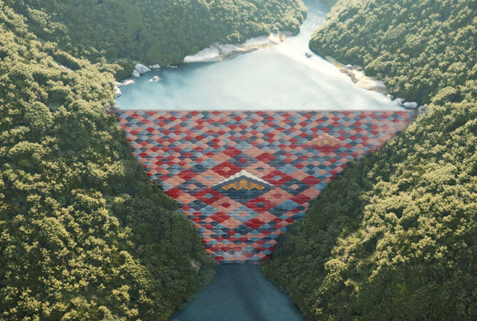 未來,不丹將建設一座有斑斕馬賽克外牆的大壩,上頭還鑲嵌有寺廟,預計在2040年前開發15GW的電力。圖片來源:Gelephu Mindfulness City