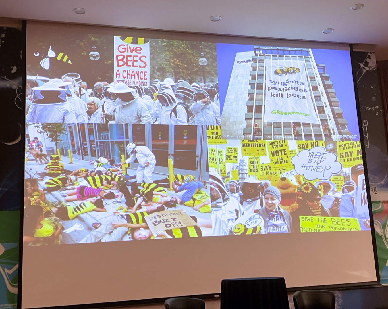 講座中楊恩誠分享了「Give bees a chance!」抗議行動。攝影:萬巧蓉