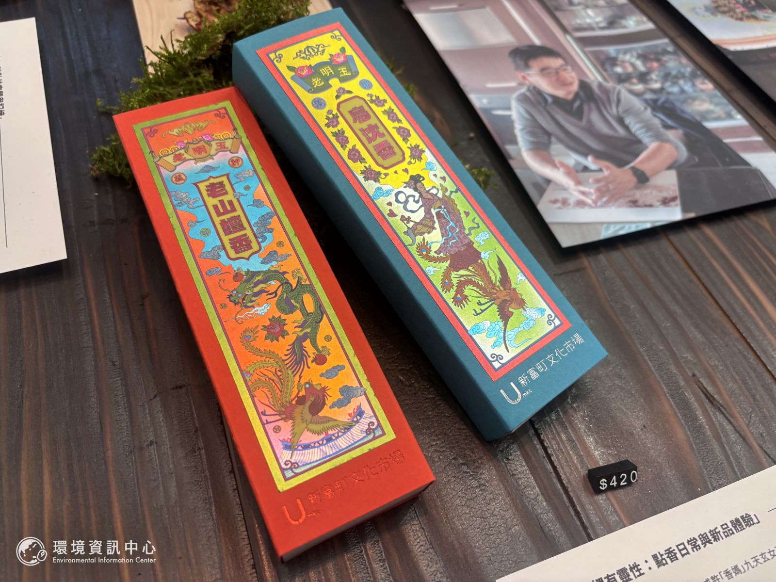 今年初春的艋舺新富町有樂事市集,周育寧為台北老香舖「老明玉」繪製新版線香包裝。周育寧表示,她位於台南佳里的老家,四樓擺放著神龕,阿嬤帶著年幼的她祭拜,整年沒有一日中斷。
