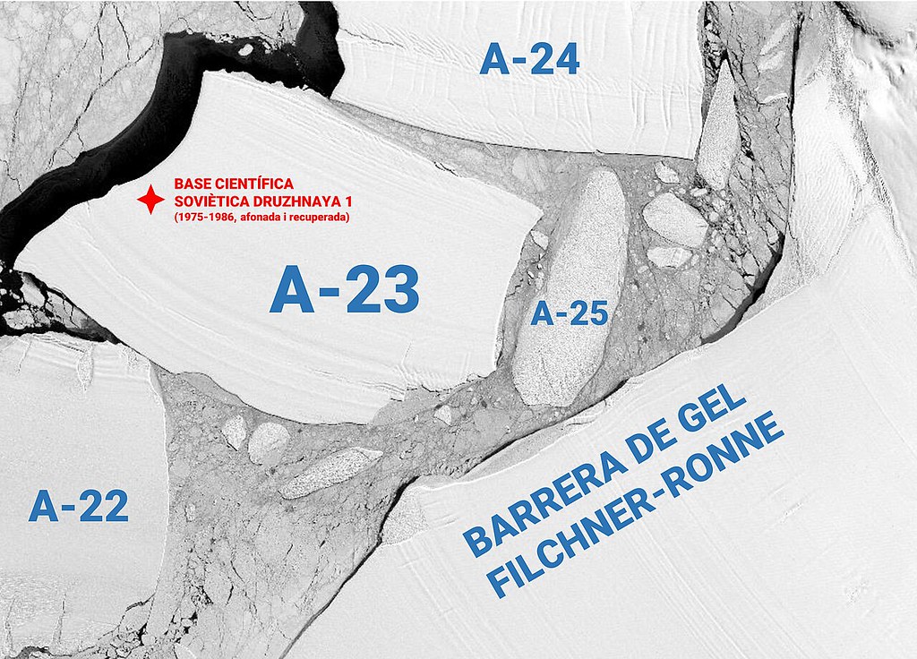 1986年,一座體積極其龐大的冰山從南極的菲爾希納冰棚(Filchner Ice Shelf)崩落,面積超過3672平方公里,超過13個台北市的大小,深達數百公尺,命名為A23a。