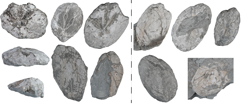 在這批海膽化石中,幾乎所有標本都明顯遭受壓扁。此外,由於殼體極為脆弱,幾乎所有標本僅存印模,缺乏殼體細節,使鑑定更加困難。