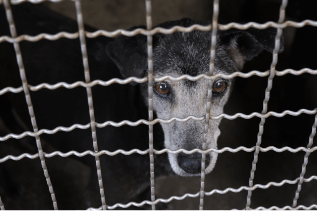 ↑待在籠子內的狗。攝影/許逸萱