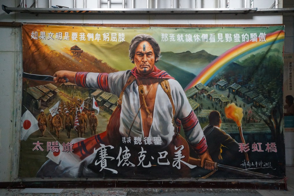 ↑ 謝森山與他手繪的賽德克巴萊電影看版。攝影/李嘉璇