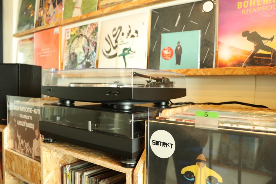 店內音樂都是使用黑膠唱片播放,擺設了多部黑膠唱片機流露老闆對黑膠唱片的熱愛。 攝影/林毓芳
