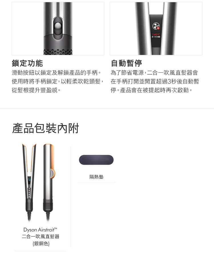 Dyson Airstrait™ HT01二合一吹風直髮器銀銅色 ** 送摺疊收納包+原廠專用底座(市值$5,000)