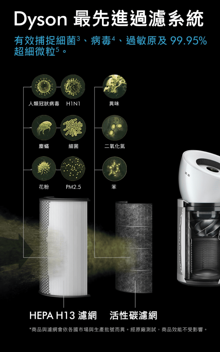 3. 測試符合 PM0.1的過濾效率( EN1822 及 ISO29463 標準),氣體捕捉率會有所不同。