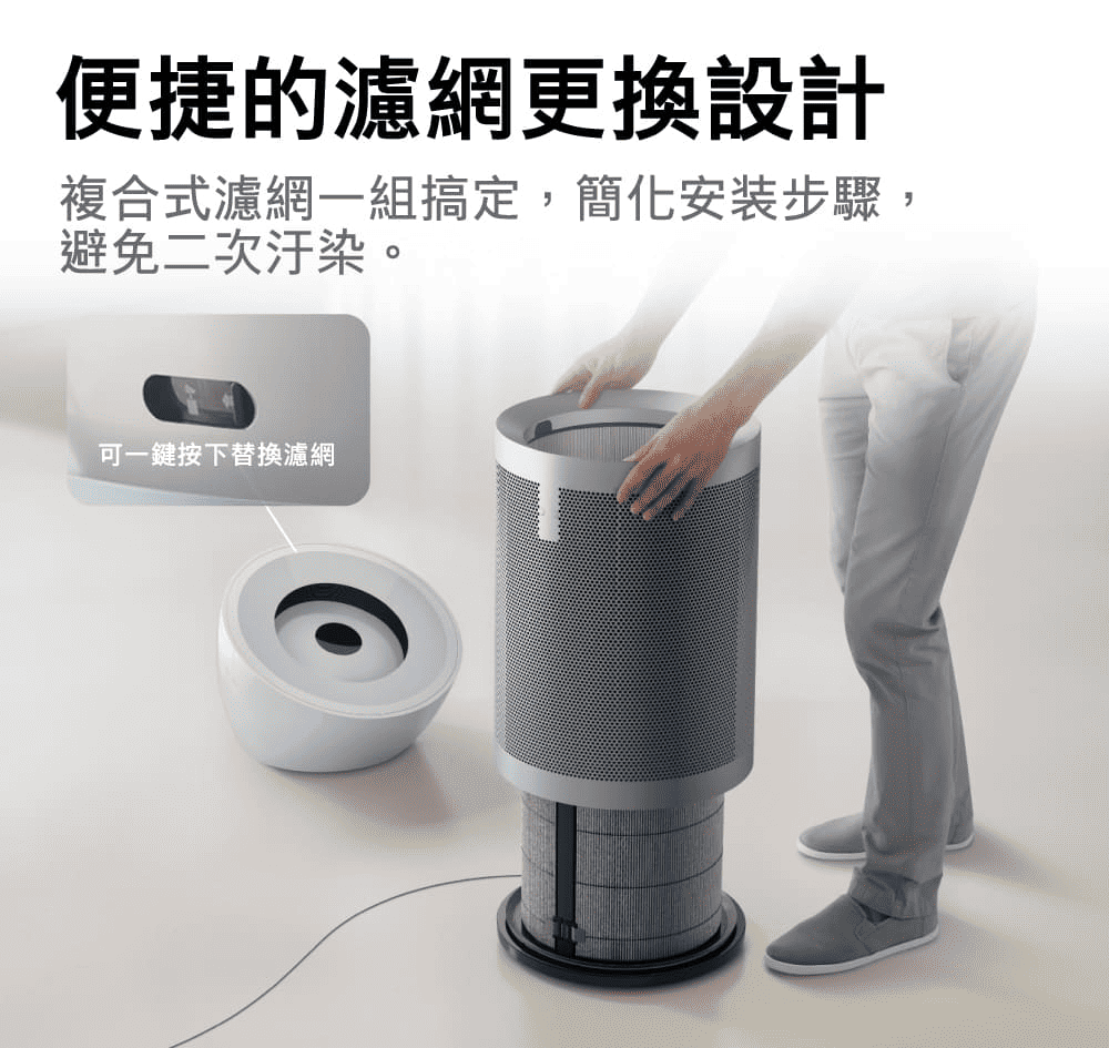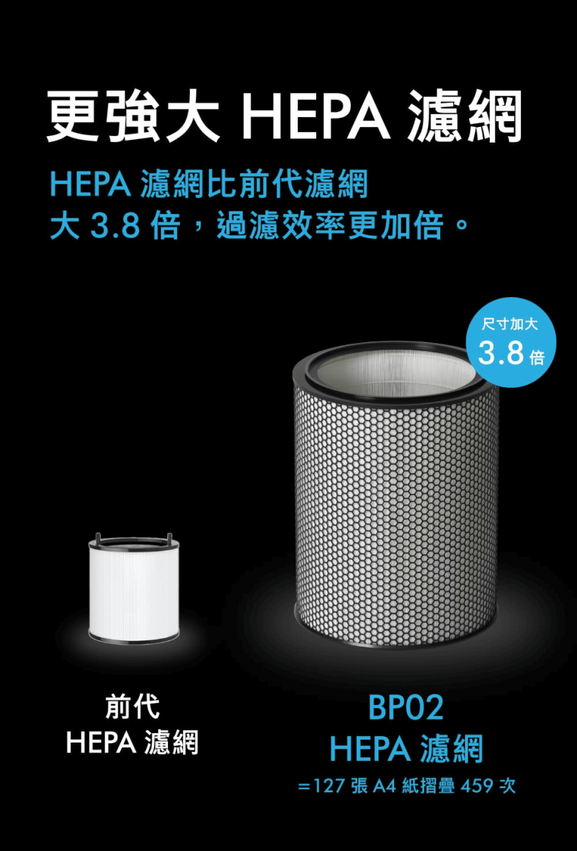 捕捉並鎖住污染物:360˚ HEPA H13 標準濾網,使用長達21公尺,經過超過459次折疊,能有效捕捉 99.95% 小至 PM0.1 的污染物。3活性碳濾網有效捕捉有害氣體,例如苯及二氧化氮。