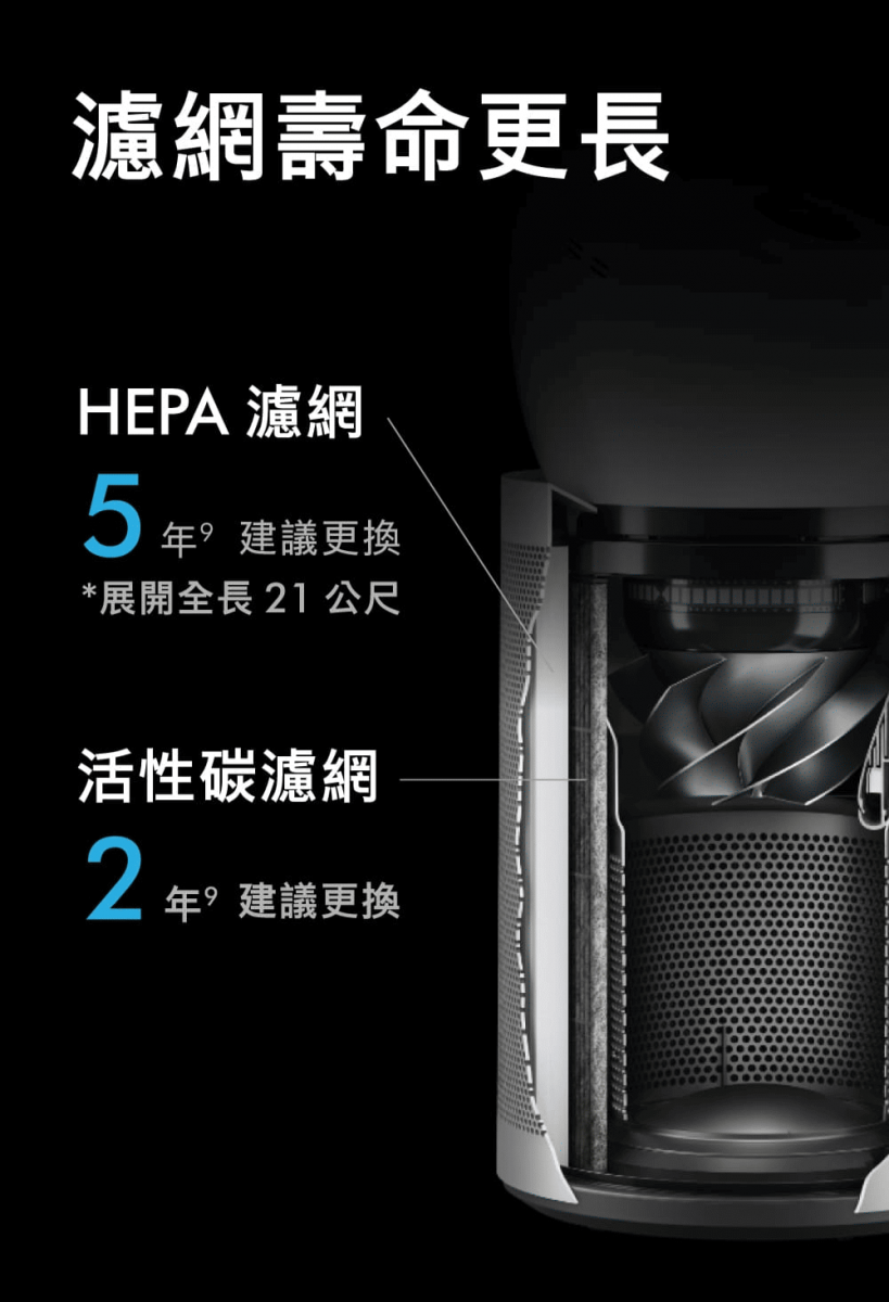 濾網 HEPA(五年更換一次);活性碳濾網(兩年更換一次)