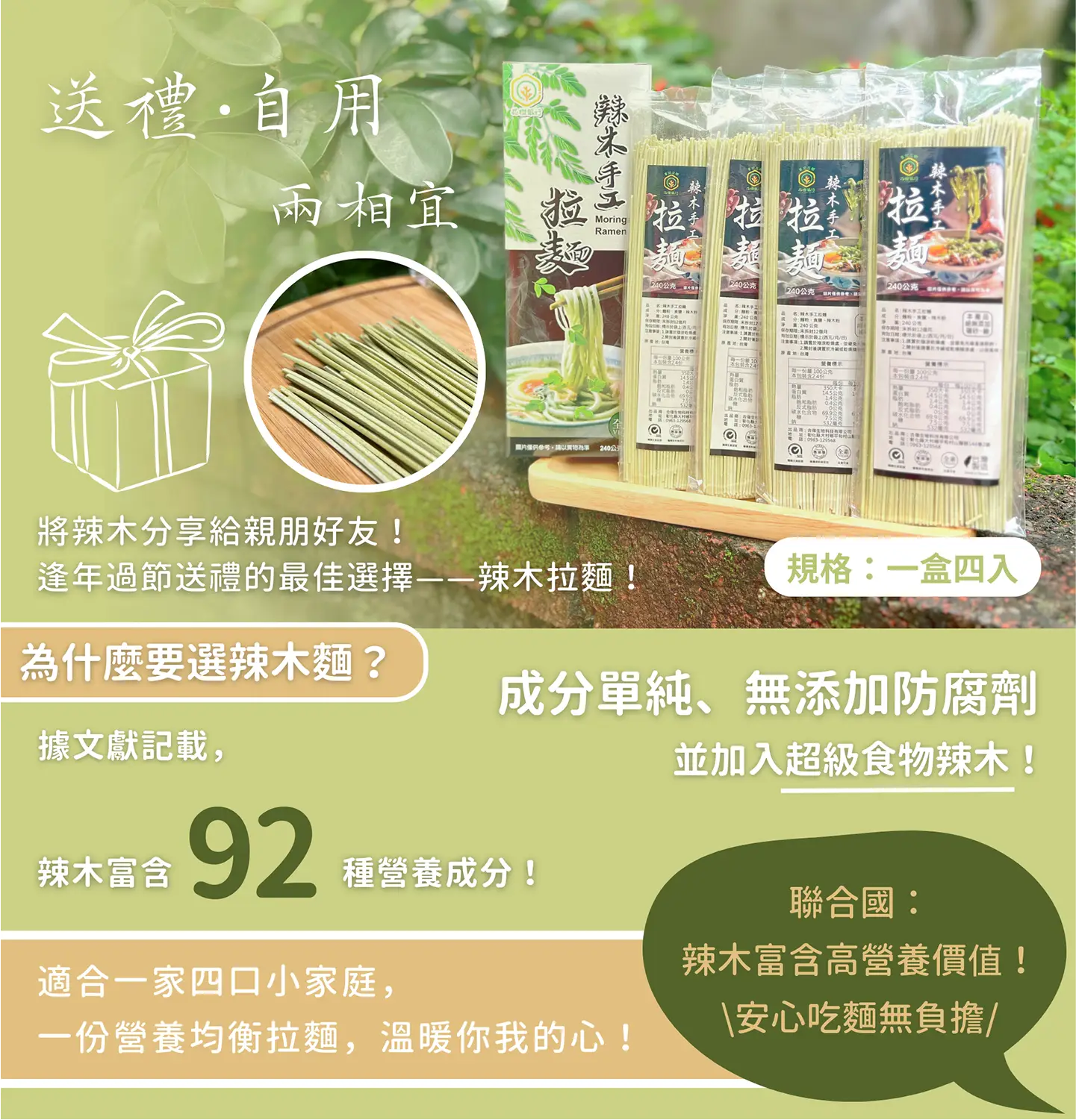 不惜成本加入大量營養的辣木粉,是健康的飲食新選擇✨ 吃起來帶有淡淡的清新香氣,喜歡手工拉麵的你千萬不能錯過! 一包約4人份,剛好滿足小家庭的一餐,用愛與環保照顧全家人的胃