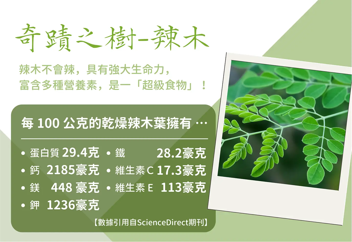 辣木被譽為「奇蹟之樹」,其葉富含多種營養素。