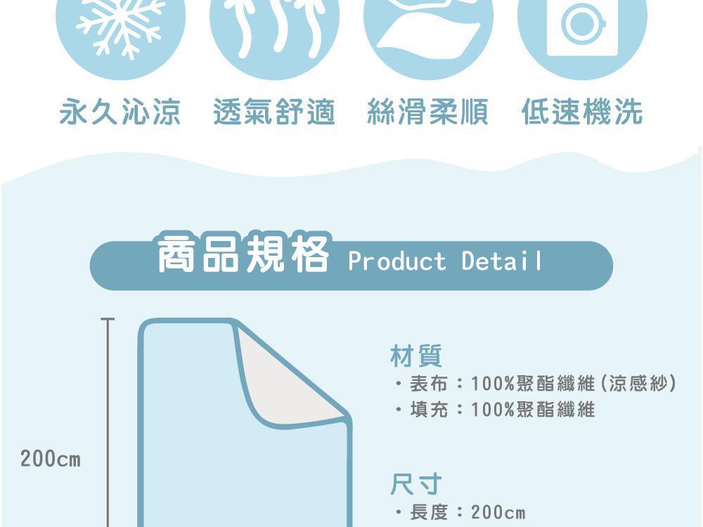 • 無化學添加,採物理涼感技術,持久涼感,舒適又涼爽