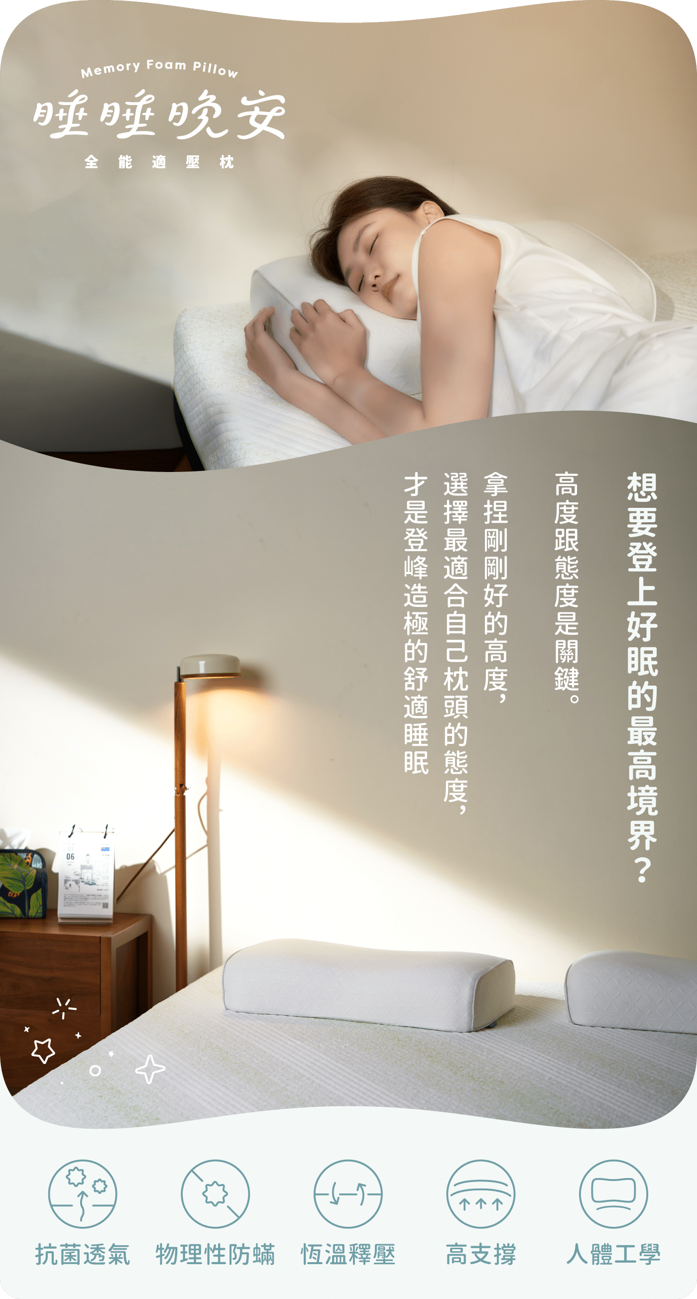 Arophant 好睡象 睡睡晚安-全能適壓枕(親水棉記憶枕)