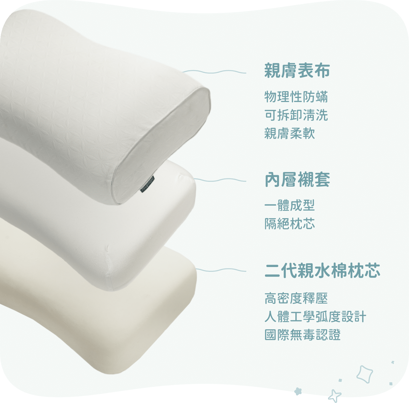 枕芯精選「二代親水記憶棉」,貼心的恆溫特性