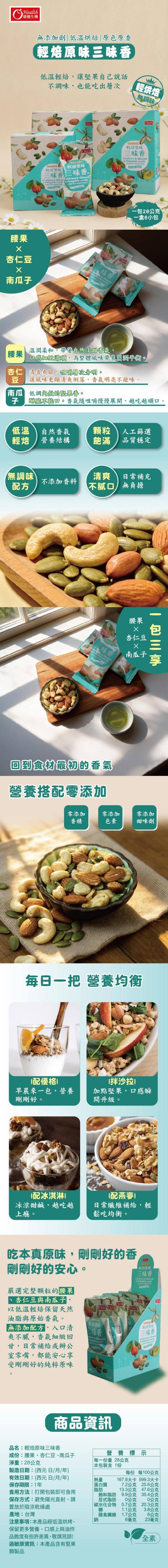 康健生機「輕焙原味三味香」幫你配好了!腰果、杏仁果再加上清脆的南瓜子,每一口都是驚喜。