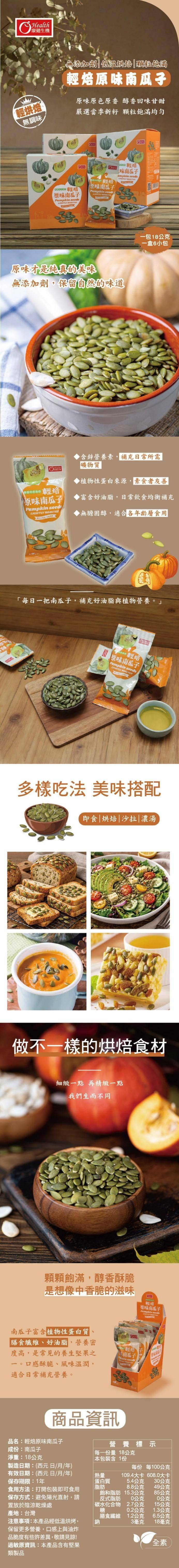 康健生機-輕焙原味南瓜子-隨手包(18g/包*6包/盒)